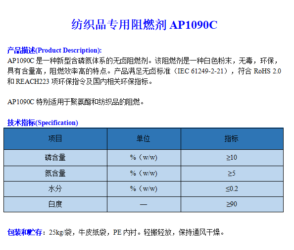 紡織品專用阻燃劑AP1090C